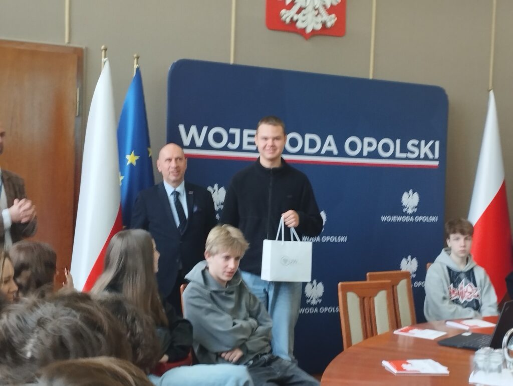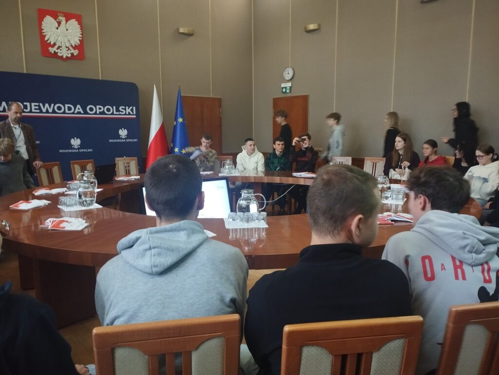 Wczoraj, na zaproszenie Pani Monika Jurek Wojewoda Opolski oraz Kuratorium Oświaty w Opolu gościliśmy w budynku przy ul. Piastowskiej w Opolu na Lekcji Obywatelskiej. Zajęcia rozpoczęły się w Złotej Sali, gdzie zasiedliśmy przy okrągłym stole i mieliśmy przyjemność wysłuchania wykładu, który przybliżył naszym licealistom zasady funkcjonowania administracji publicznej – rządowej i samorządowej. Następnie wzięliśmy udział w panelu dotyczącym zdrowego żywienia (przeprowadzonym przez pracowników Inspekcji Jakości Handlowej Artykułów Rolno-Spożywczych przy UW) oraz dyskusji z radcą prawnym nt. konsekwencji łamania prawa (np. używania lub posiadania tzw. kolekcjonerskich dokumentów). Po kolejnym panelu dotyczącym wolontariatu, młodzież zwiedzała gmach urzędu i skorzystała z windy Paternoster (ciekawe skąd wzięła się ta nazwa – trzeba to sprawdzić!).