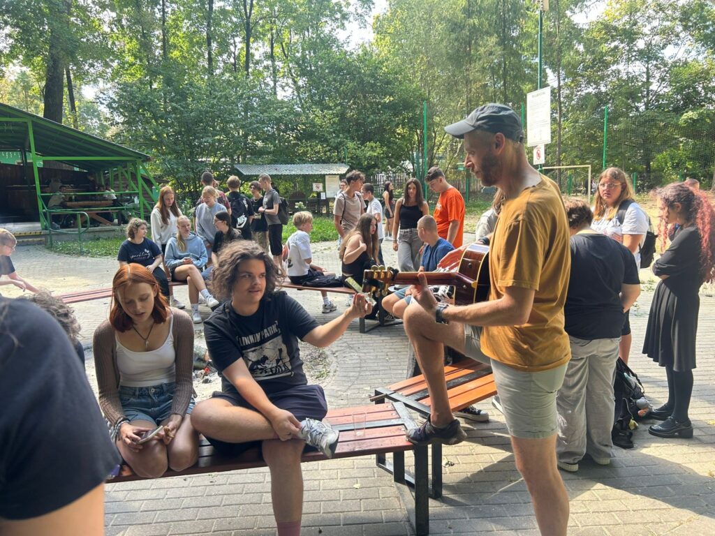 . Nasz matematyk, Pan Tomasz umilił nam czas grając na gitarze, staraliśmy się nieśmiało aczkolwiek z radością podśpiewywać do jego akompaniamentu.