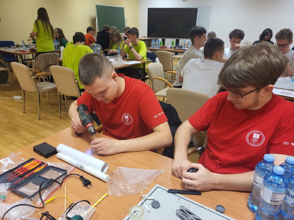 Jak już wcześniej wspominaliśmy, uczniowie klasy IIA Niepublicznnego Liceum Ogólnokształcącego w Głuchołazach biorą udział w Projekcie „Wsparcie dla zrównoważonej przyszłości II” realizowanym w ramach programu „Społeczna odpowiedzialność nauki II”, dofinansowanym przez Ministra Nauki i Szkolnictwa Wyższego, a realizowanym przez Państwową Akademią Nauk Stosowanych w Nysie. Projekt będzie trwał do czerwca 2026r., bierze w nim udział 8 szkół ponadpodstawowych Powiatu Nyskiego – nasza ekipa jest najmłodsza (pzostali uczestnicy są uczniami klas trzecich). W środę 28 maja braliśmy udział w zajęciach projektowych polegających na samodzielnym skonstruowaniu modelu pojazdu napędzanego wodorem. Projekt został całkowicie samodzielnie opracowany przez naszych uczniów, urządzenie zostało skonstruowane z własnych materiałów i praca nad nim zakończyła się sukcesem – pojazd został uruchomiony i pokonał wymaganą odległość!!! GATULACJE chłopaki!!! Nazą szkołę reprezentują uczniowie: Natan Malinowski, Dawid Cempel, Tymoteusz Pyrzyk, Tomasz Wiktor i Dawid Prościak. W przyszłym tygodniu weźmiemy udział w kolejnym etapie projektu – w grze miejskiej. Dziękujemy PANS w Nysie za ciekawe zajęcia i możliwość poszerzania wiedzy ![]()