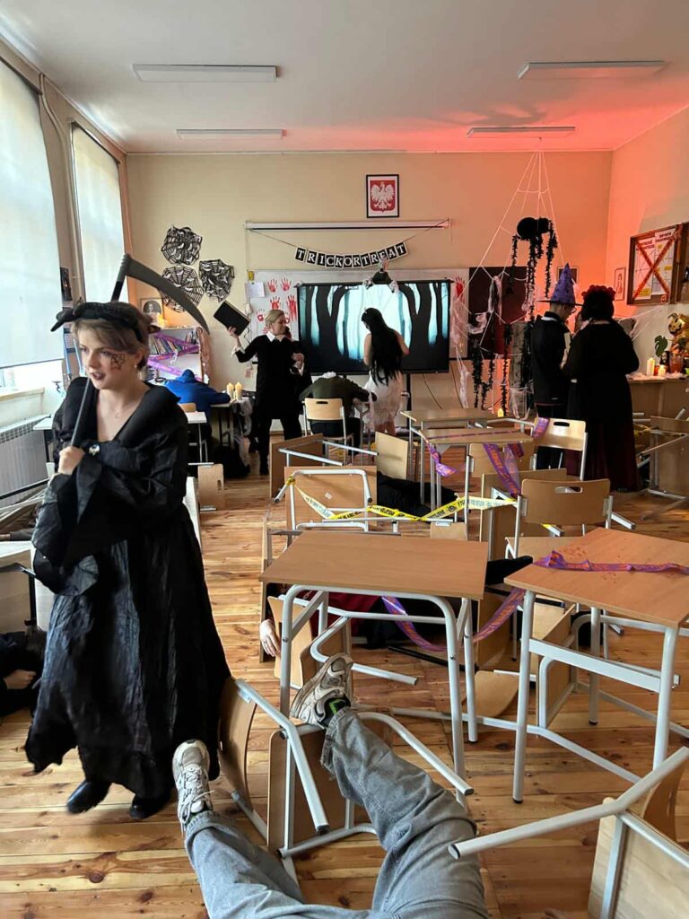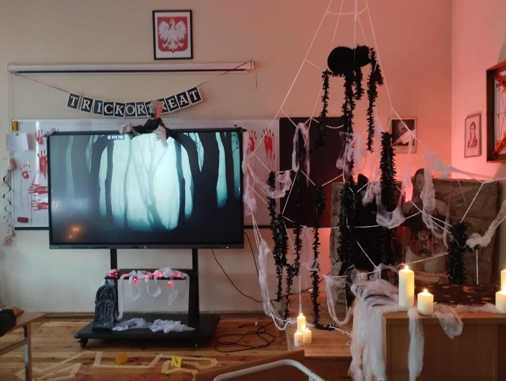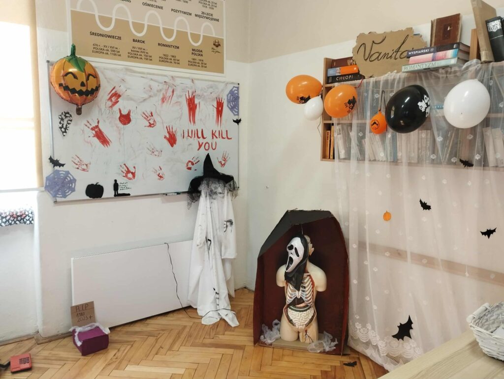 Z okazji Halloween uczniowie wzięli udział w konkursie na najstraszniejszą salę 2025 roku. Były duchy, pajęczyny, zamki, świece, a nawet szept Edgara Allana Poe: „Nevermore…”