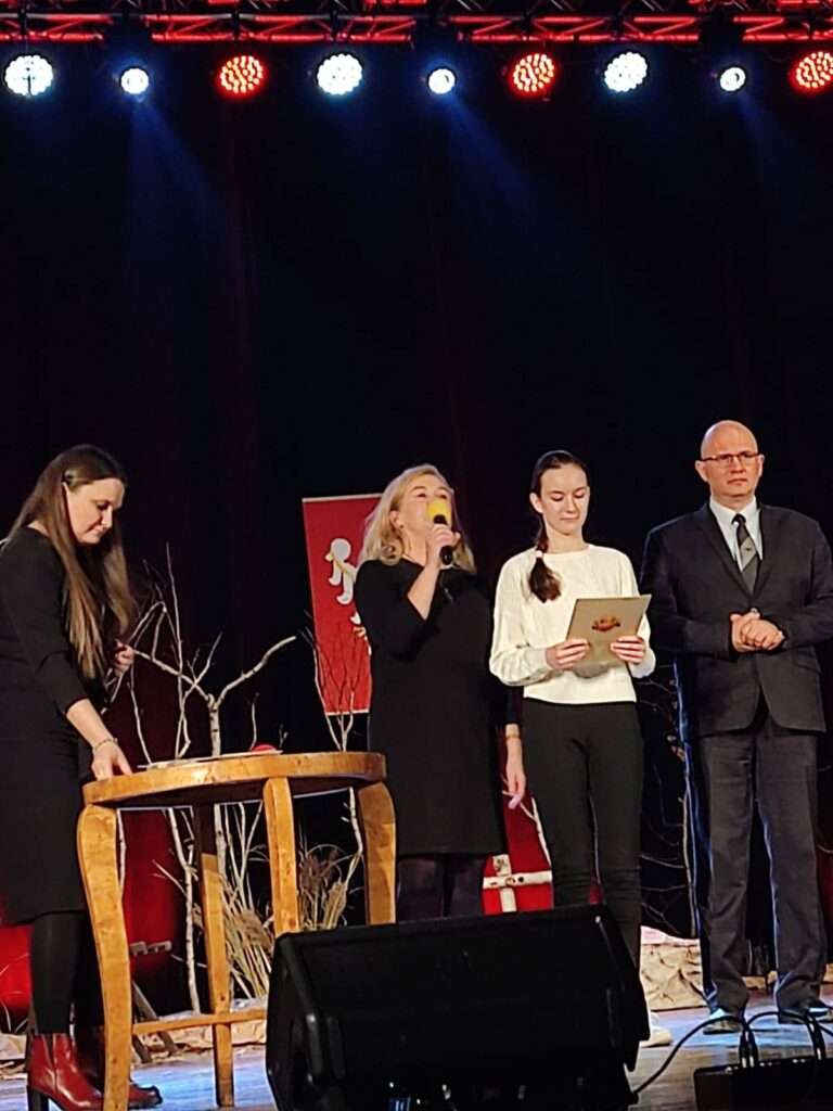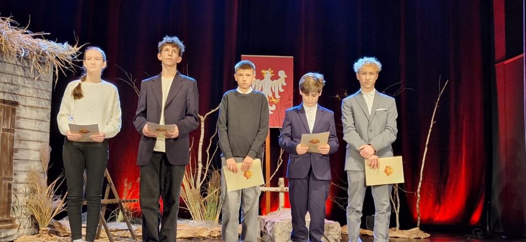 Za nami uroczysta akademia poświęcona 1000-leciu koronacji Bolesława Chrobrego. Jej organizatorem było Niepubliczne Liceum Ogólnokształcące w Głuchołazach oraz Stowarzyszenie na Rzecz Szkół CHROBRY. Sala Centrum Kultury im. Kawalerów Orderu Uśmiechu w Głuchołazach (dziękujemy Państwu za wsparcie techniczne i gościnę) wypełniła się zaproszonymi gośćmi, którymi byli między innymi uczniowie okolicznych szkół. Kilka słów skierowal do widowni Pan Burmistrz Paweł Szymkowicz , następnie mieliśmy przyjemność wysłuchać wykładów Pani Leokadia Drożdż , dr Karoliny Biedki oraz dr hab. Marka Białokura, którzy reprezentowali Instytut Śląski oraz Opole Uniwersytet Opolski. Następnie licealisci wraz z Chór Capricolium przedstawili program teatralno-muzyczny opowiadający o początkach Państwa Polskiego. Nie zabraklo humoru, pięknych dekoracji i kostiumów oraz… pantomimy. Kolejnym punktem bylo wręczenie nagród i pamiątkowych dyplomów zwycięzcom i uczestnikom Wielkiego Testu Historycznego, który odbyl się tydzień wcześniej. Zwycięzcy i wyróżnieni pojadą na początku grudnia razem z uczniami naszego liceum do Warszawy, gdzie będą zwiedzać Sejm i wezmą udział w warsztatach w Muzeum Narodowym. Gratulujemy zwycięzcom: