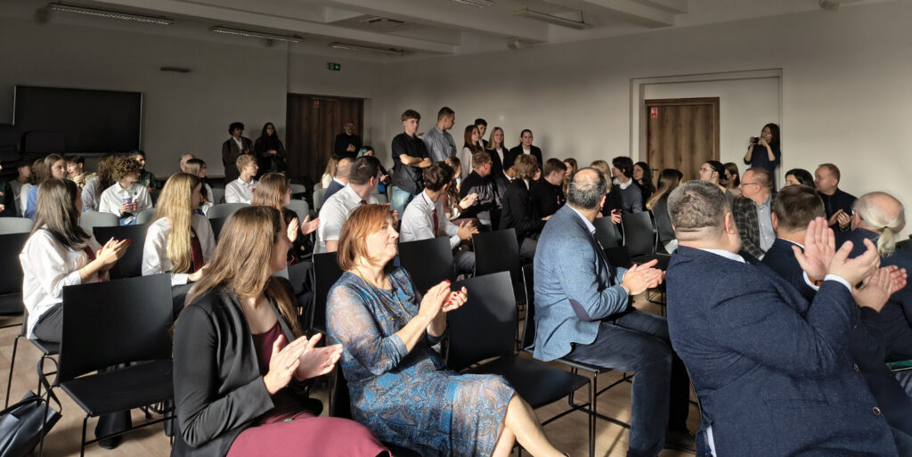 Nasze liceum wystąpiło tym razem jako drużyna rezerwowa – w składzie mamy nowych debatujących z klasy pierwszej, którzy zdobywają cenne doświadczenia. W skład drużyny Ogólniaka weszli: Tymek, Wojtek, Milena, Zuzia, Maryla i Dawid. Wszystkim udzieliła się adrenalina debat, dyskusji nie było końca. Cenne doświadczenie, mieliśmy okazję poznać jury, marszałków no i przede wszystkim drużyny, z którymi niebawem staniemy w szranki. Ponieważ bardzo cenimy umiejętność debatowania już 20 listopada podczas akademii z okazji 1000-lecia koronacji Bolesława Chrobrego pokażemy naszym młodszym kolegom na czym ta dyscyplina polega.
