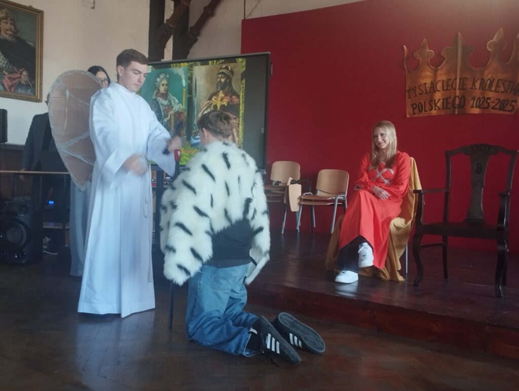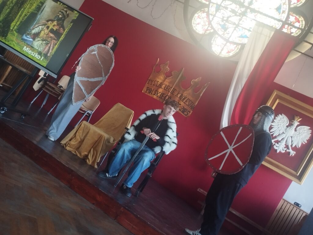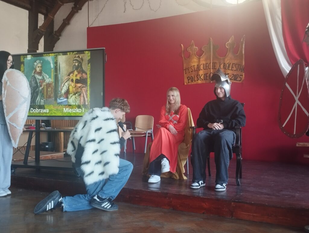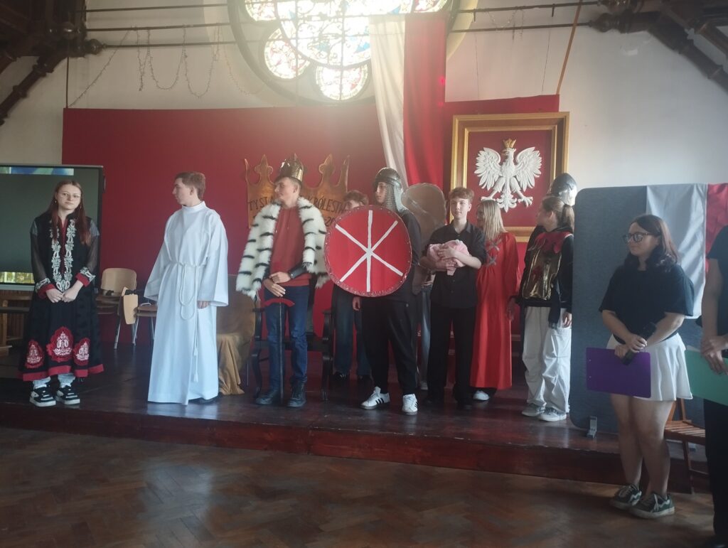 Temat polskości towarzyszy nam ciągle w ostatnim czasie. Obchody Narodowego Święta Niepodległości 11 listopada za nami, a rok 2025 upamiętniający 1000-lecie koronacji Bolesława Chrobrego trwa. Dziś mieliśmy okazję obejrzeć program przygotowany przez uczniów klasy IIA opowiadajacy o początkach państwa polskiego. Rozpoczynamy cykl wydarzeń poświęconych historii z czasów św. Wojciecha, Mieszka I i Dobrawy oraz Boleslawa Chrobrego. W piątek 14 listopada odbędzie się w naszym liceum Wielki Test Historyczny dla uczniów szkół podstawowych, a 20 listopada zapraszamy do Centrum Kultury na uroczystą konferencję, którą nasz Ogólniak organizuje z Instytutem Śląskim. Dziś dziękujemy młodzieży i opiekunowi grupy Panu dr Jarosławowi Dutce za spektakl![]()